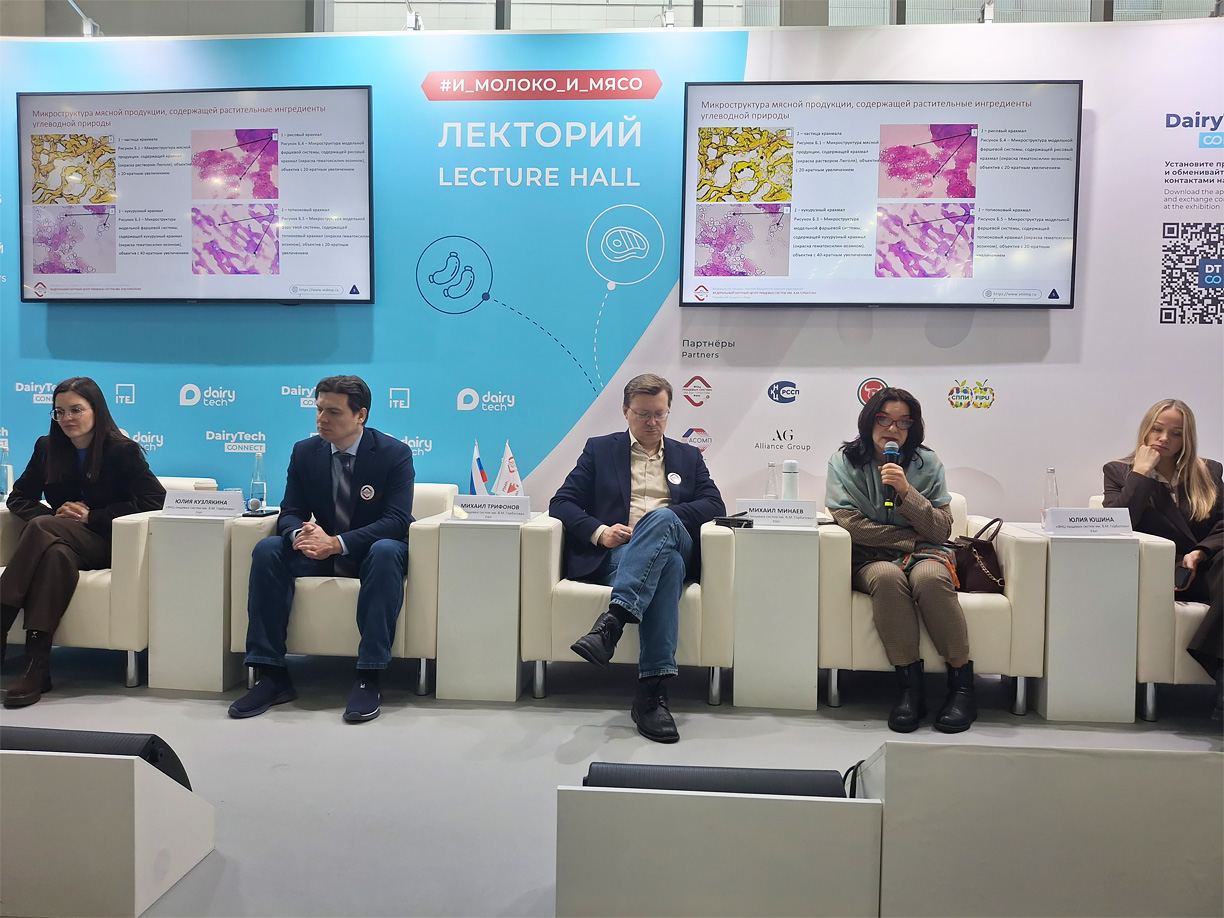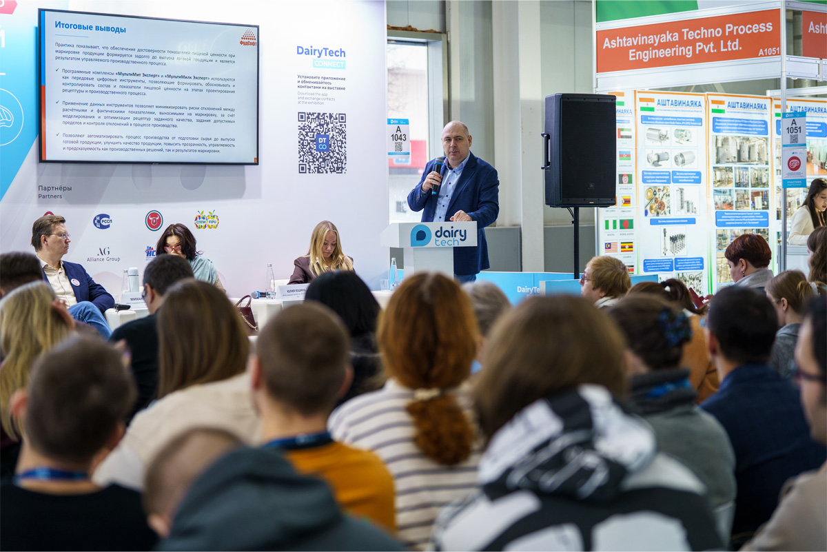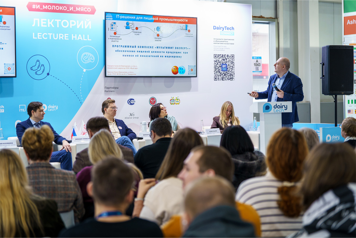 Наши эксперты выступили с докладом «Программный комплекс "МультиМит Эксперт" — обеспечение пищевой ценности продукции: при выносе её показателей на маркировку». В ходе выступления было наглядно продемонстрировано, как цифровые системы «МультиМит Эксперт» и «МультиМилк Эксперт» помогают минимизировать риски расхождения между данными на маркировке и фактическими показателями пищевой ценности мясной и молочной продукции.